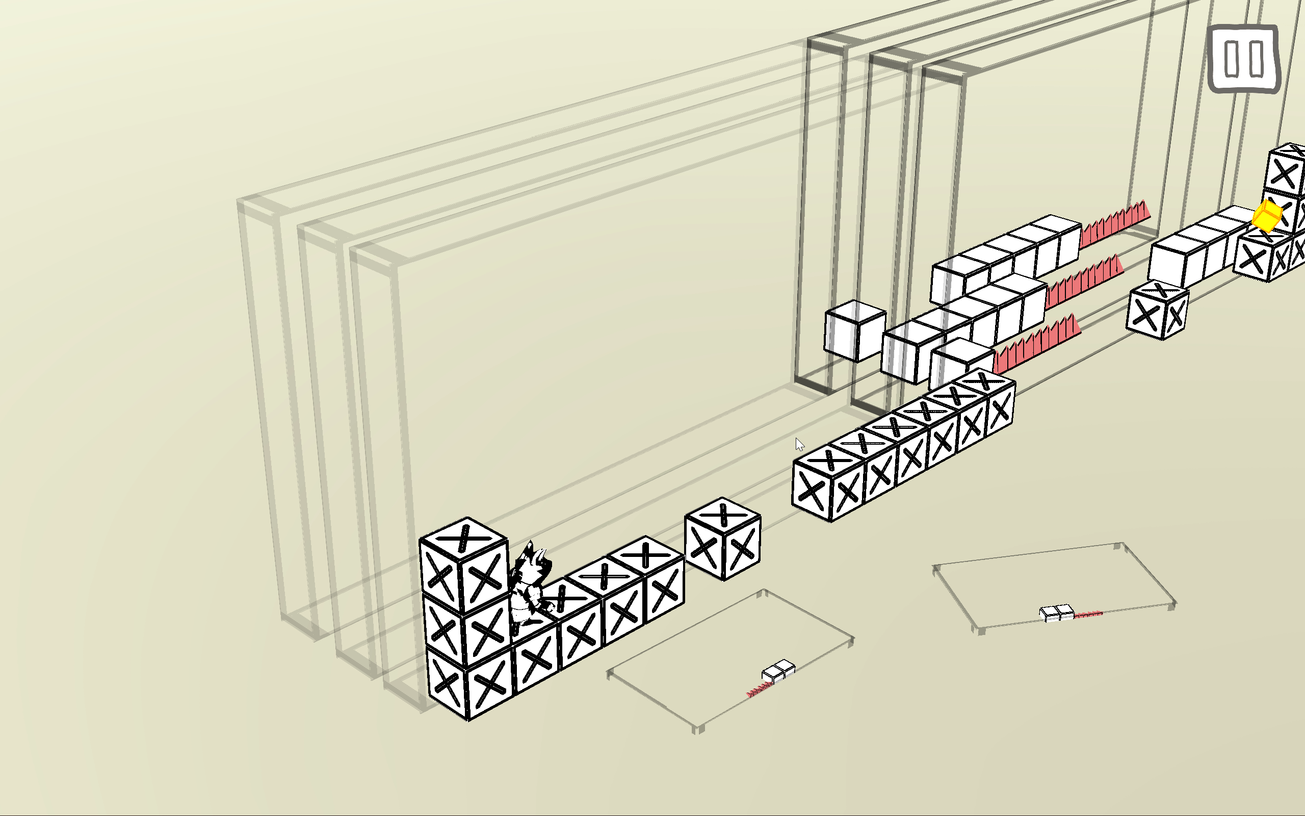 When the player presses the Q key, the game switches to a 3D perspective. At this point, players can select 2D Cassettes on the desktop and insert them into slots at different layers. Then, when they switch back to the 2D perspective, the level environment is altered.