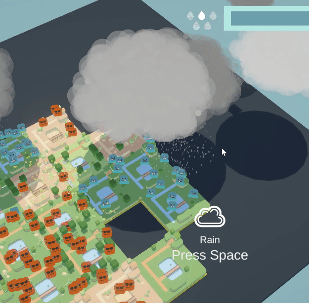 When the cloud that players control becomes large enough, players can press the 'E' key to condense themselves. As the water energy gathers, players can press the spacebar to make it rain over the target land.